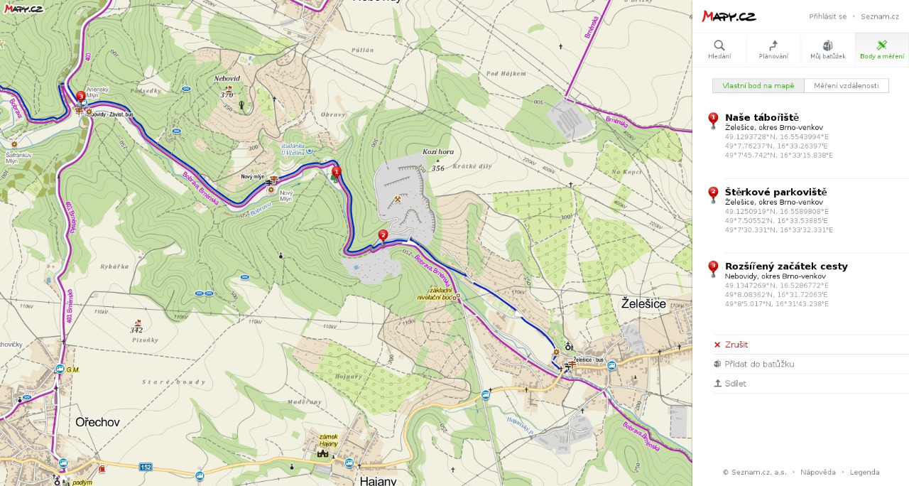 Bohužel máme povolení pro vjezd do chatové oblasti pouze pro jedno organizátorské auto, které bude vozit vodu. Ostatní železné povozy budou muset zůstat zaparkované u nedalekého lomu (bod 2 na mapě). Pro dopravení vašeho vybavení z parkoviště na tábořiště bude nachystaná k vypujčení kárka, případně organizátorské auto, které bagáž odtransportuje. Pokud jsou tyto způsoby pro vás nedostačující, kontaktujte prosím organizátory!